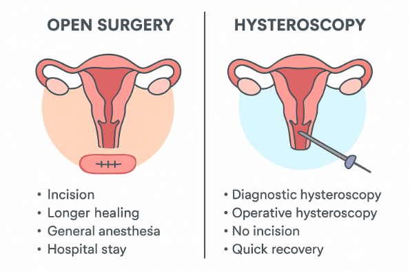 Most patients can return home the same day after a diagnostic hysteroscopy. Minor cramping or spotting may occur temporarily. Our team provides detailed post-op guidance and support.